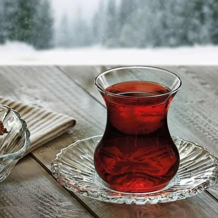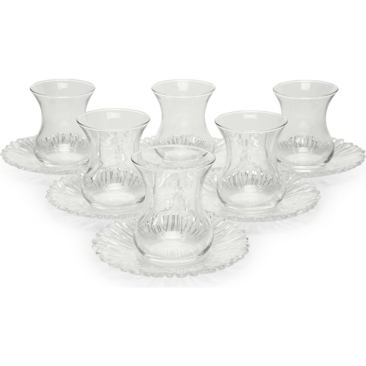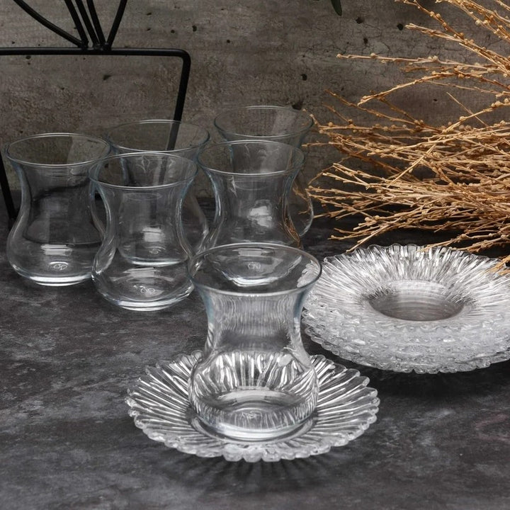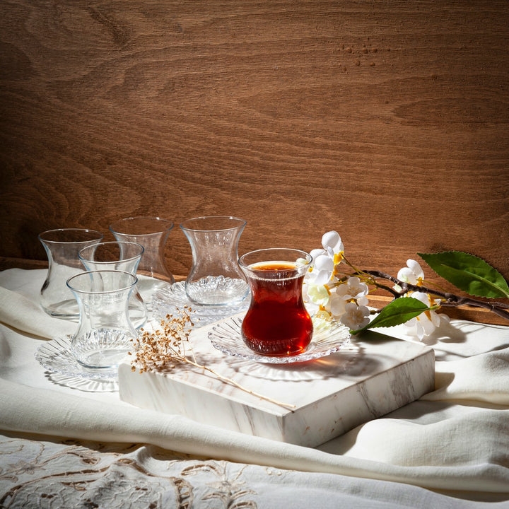 - Complete 12-Piece Set: Six tea glasses and six crystal saucers for a full serving experience.